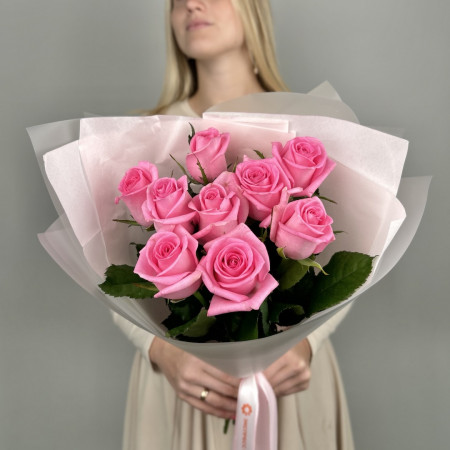 Роза кустовая - 7 шт., Современная упаковка - 1 шт., Лента атласная - 1 шт.Доставка 0₽ от 30-ти минут